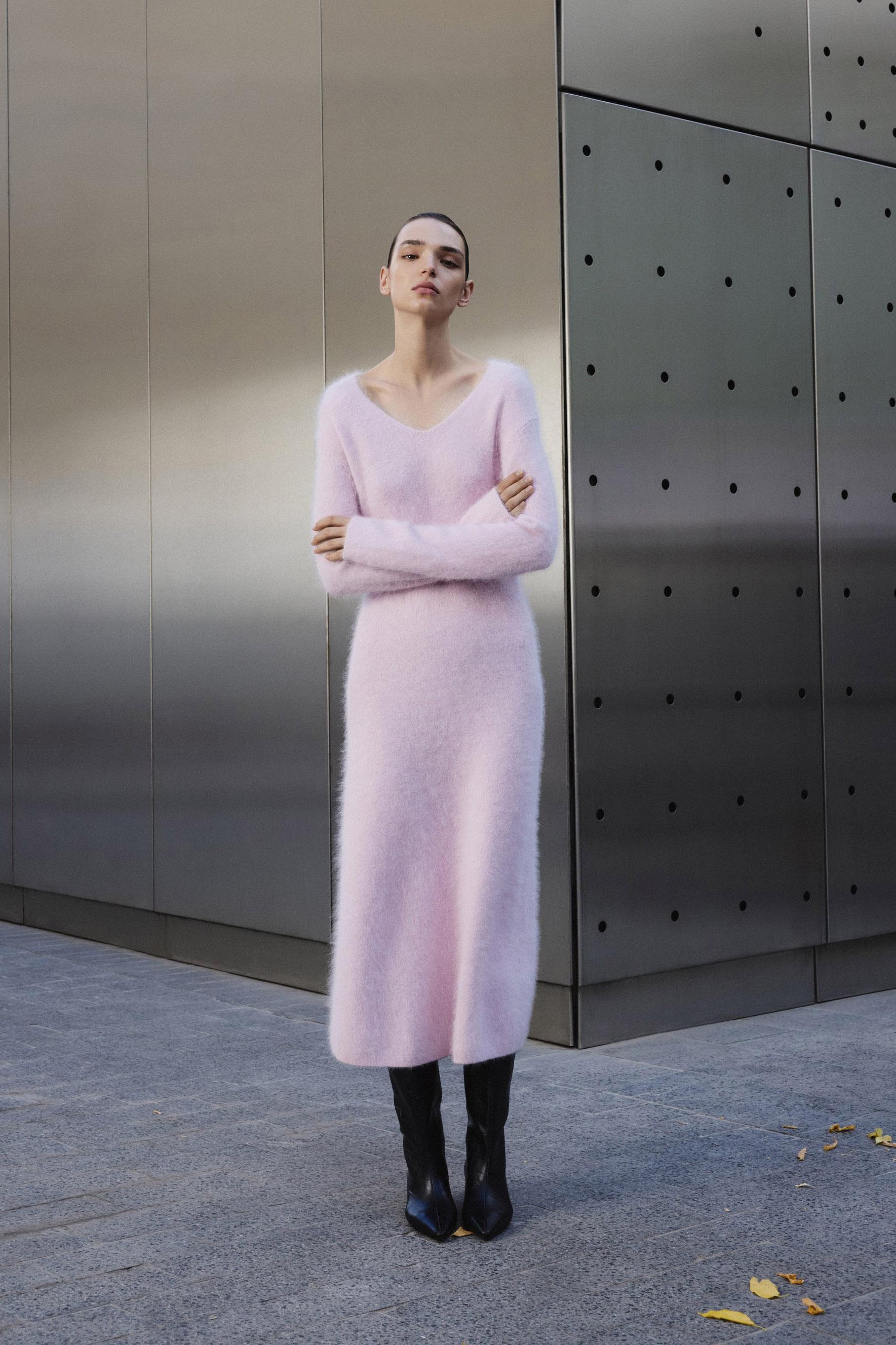 Где купить и сколько стоит: пушистое платье в нежно-розовом оттенке мы нашли в Lime — модель из ангорской шерсти стоит 10 999 руб. Мини-вариант с высоким горлом есть в O'Stin за 3119 руб., правда, шерсти в составе не так много.