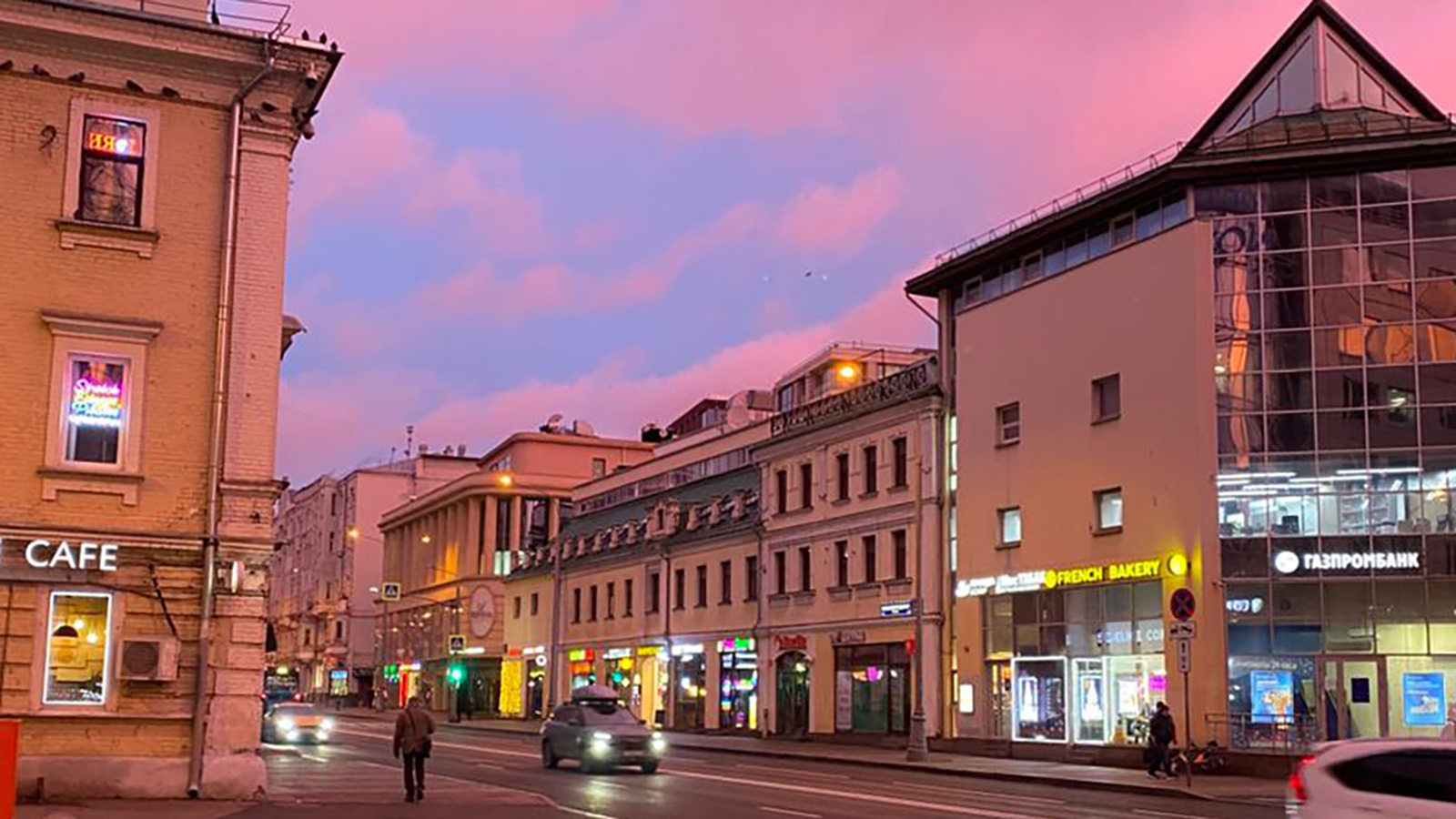 Москву озарил розово-фиолетовый рассвет утром 14 ноября. Фото и видео