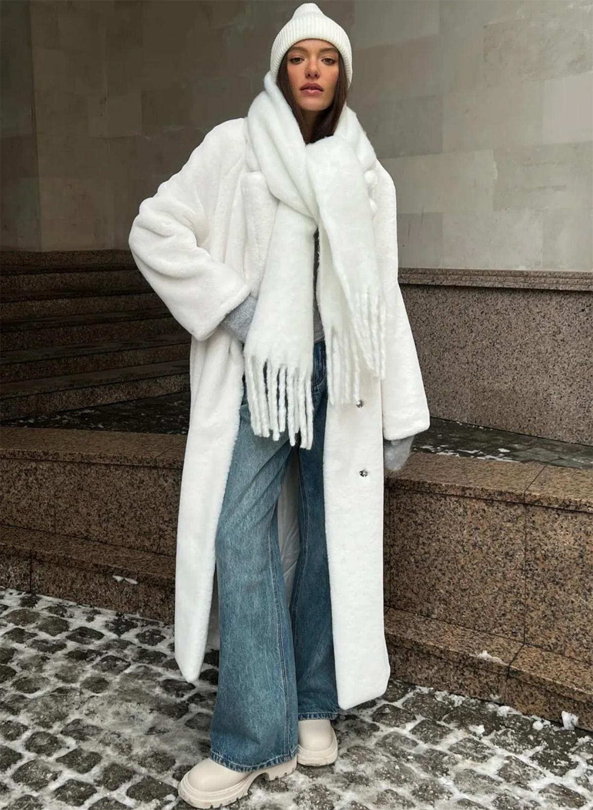 Где купить и сколько стоит: белая обувь переживает новую волну популярности, и найти ее не так сложно. Среди оригинальных вариантов — балетки из овчины от Befree за 2299 руб., а в качестве базы можно примерить сапоги Rio Fiore за 4106 руб. На маркетплейсах можно найти множество аксессуаров в нужном оттенке от 600 руб. — начиная от варежек и заканчивая палантинами.