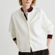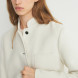 Обратите внимание на фактуру: матовая ткань смягчает прохладные белые оттенки, а блестящие поверхности усиливают контраст с кожей.