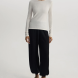 - Многослойность. Белый верхний слой, шерстяной свитер и текстурные брюки — так образ будет выглядеть живее, а белый не покажется слишком холодным.