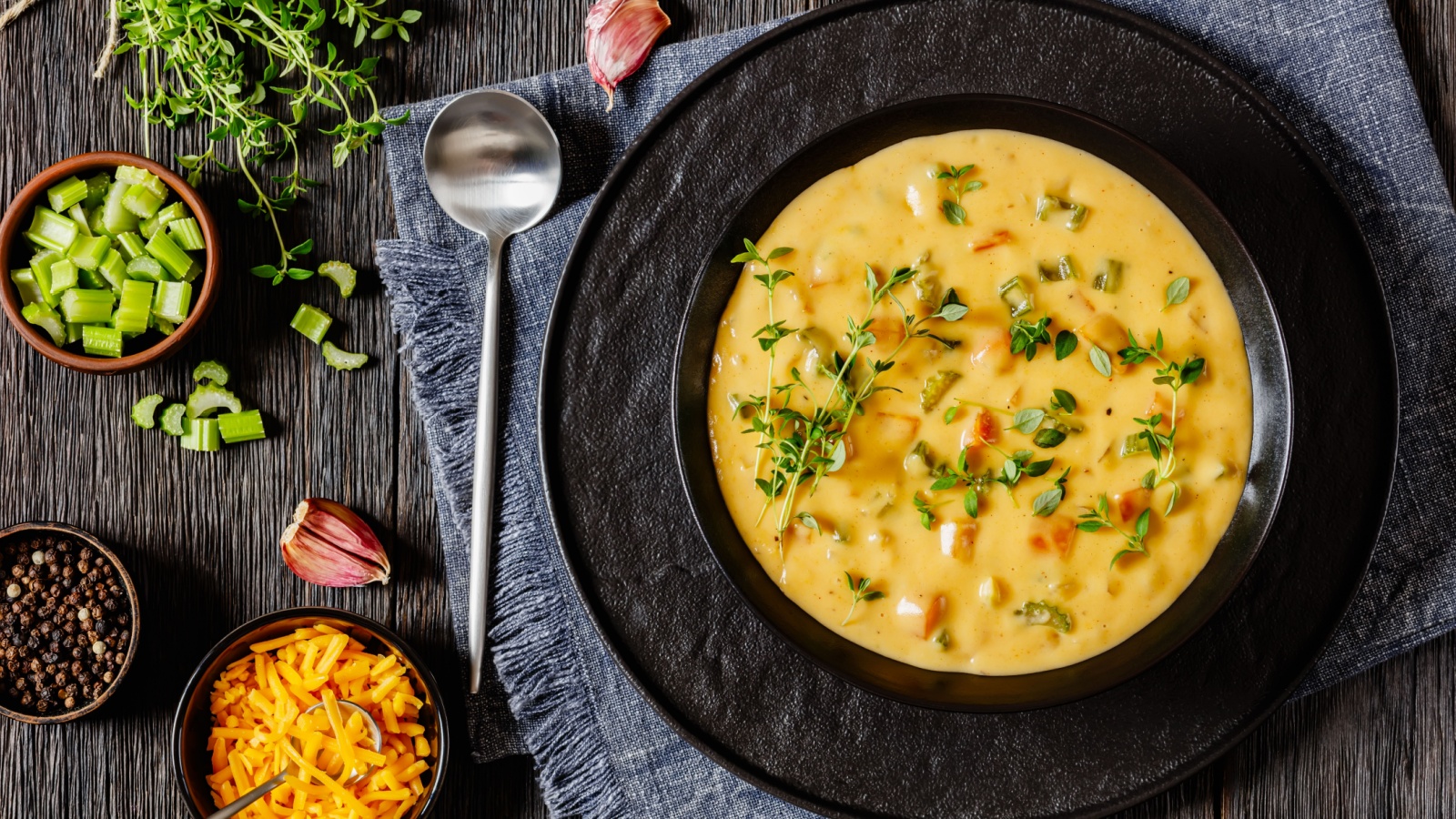 Сырный суп лучше всего подавать горячим в глубоких тарелках или керамических пиалах