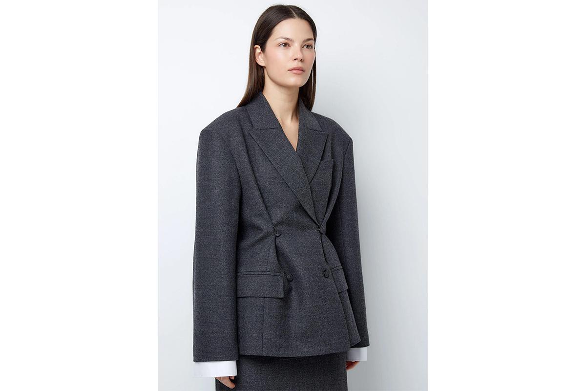 Футуристичный жакет — это не необычный цвет, а архитектура. У него может быть четкая и гиперболизированная линия плеча, слегка завышенная посадка, прямой или даже угловатый силуэт. Часто такие жакеты выглядят так, будто скроены в одной плоскости.