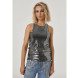 Главное правило — выбирать простые силуэты. Металлизированная ткань сама по себе тот еще акцент, поэтому форма должна быть максимально спокойной: прямые юбки, топы без декора, лаконичные платья-футляры.