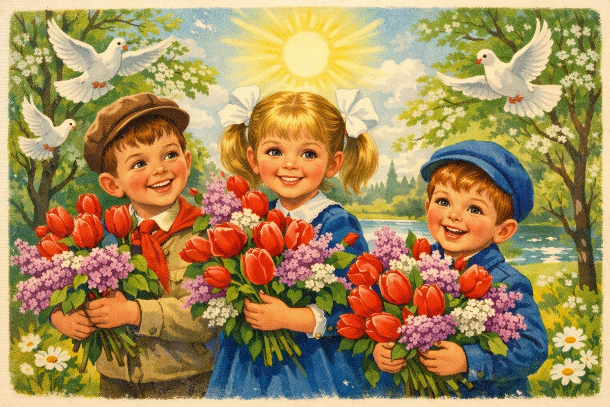 . Картинки в советском стиле, для родных и забавные открытки на ПервомайОбновлено 16 марта 2026, 13:13