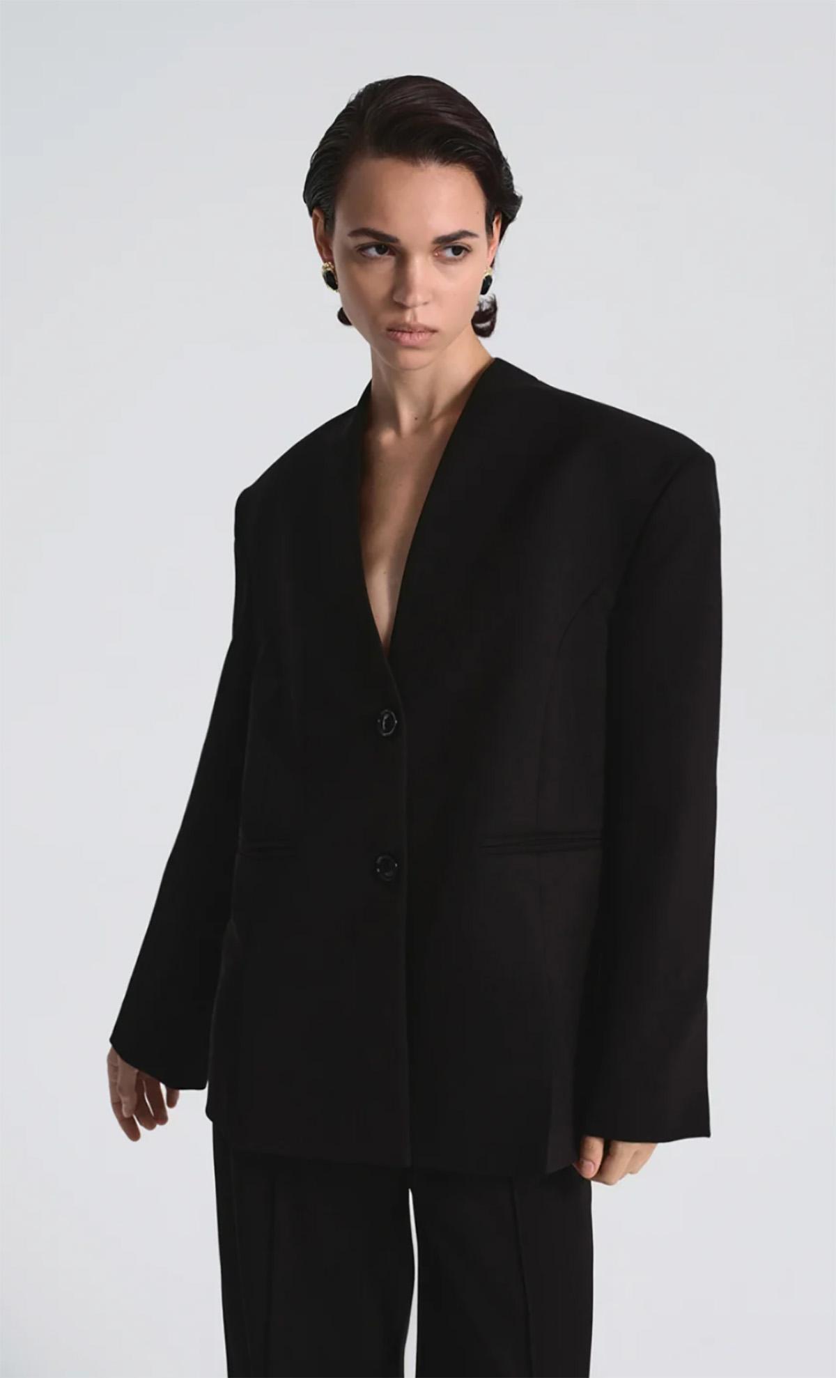Где купить и сколько стоит: в первую очередь — ищем идеальный жакет. В Mango предлагают серо-голубой вариант на одной пуговице за 15 999 руб., в BRMSK есть модель в полоску за 7990 руб., а черный с объемными рукавами можно примерить в 2Mood — жакет с шерстью стоит 24 980 руб.