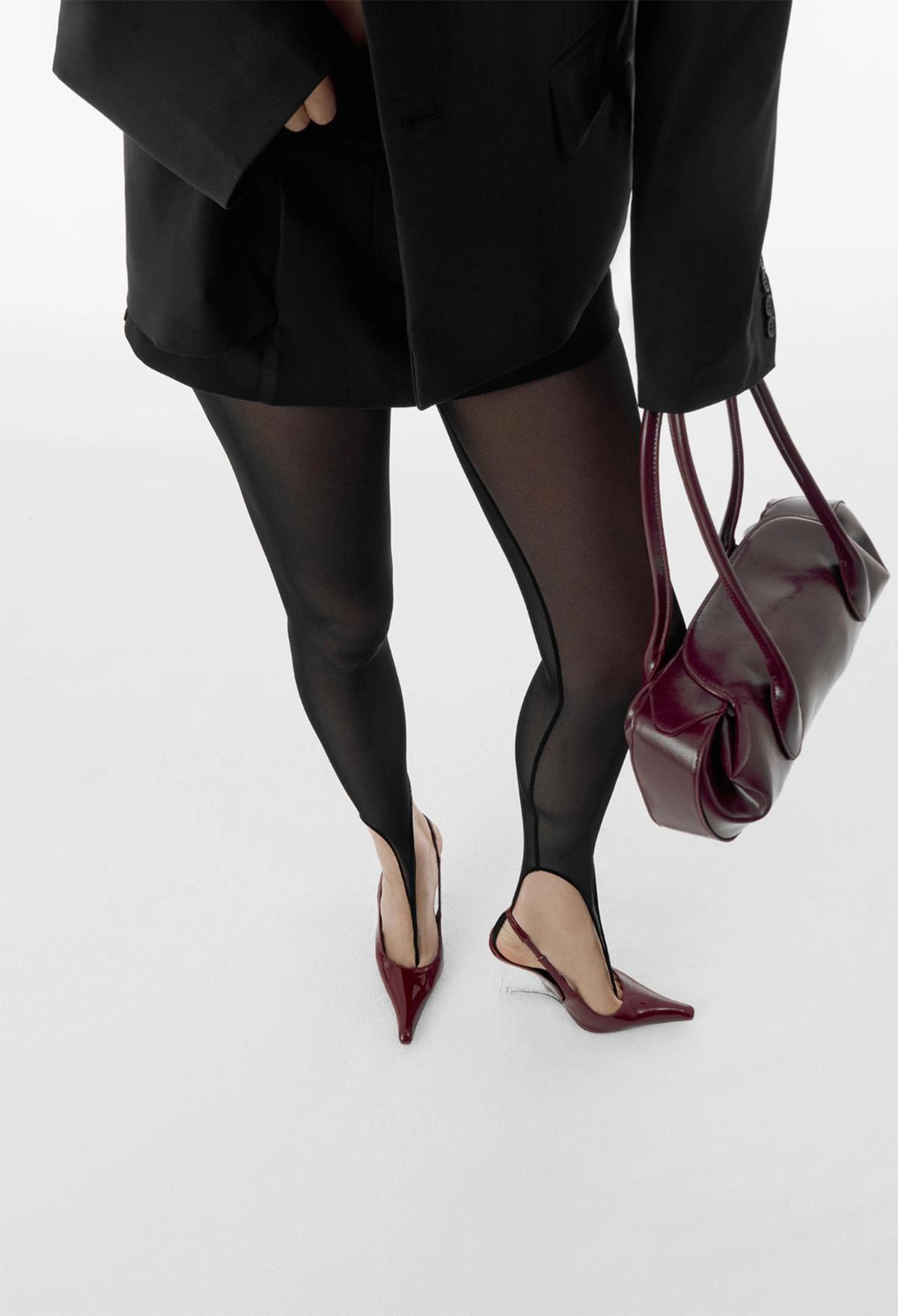 Отдельное значение получает и обувь — каблуки возвращаются как инструмент, который меняет осанку и ритм движения.