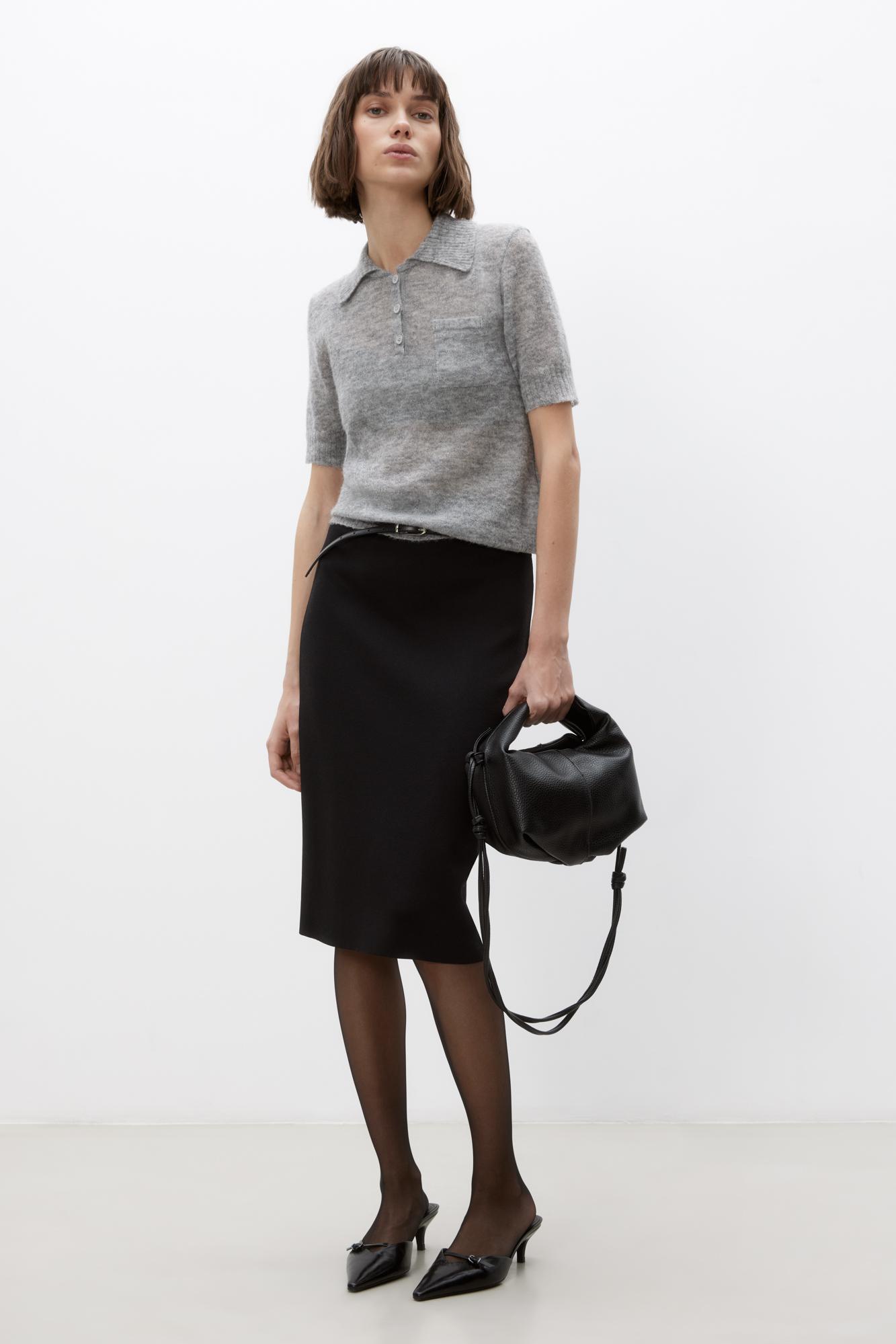 Главное, что приносит эта эстетика, — внимание к качеству линий. Одежда становится чище по форме: прямые жакеты, лаконичные платья, строгие рубашки, юбки без лишнего объема. Вещи не перегружены деталями, но при этом выглядят завершенными — за счет кроя и материала.