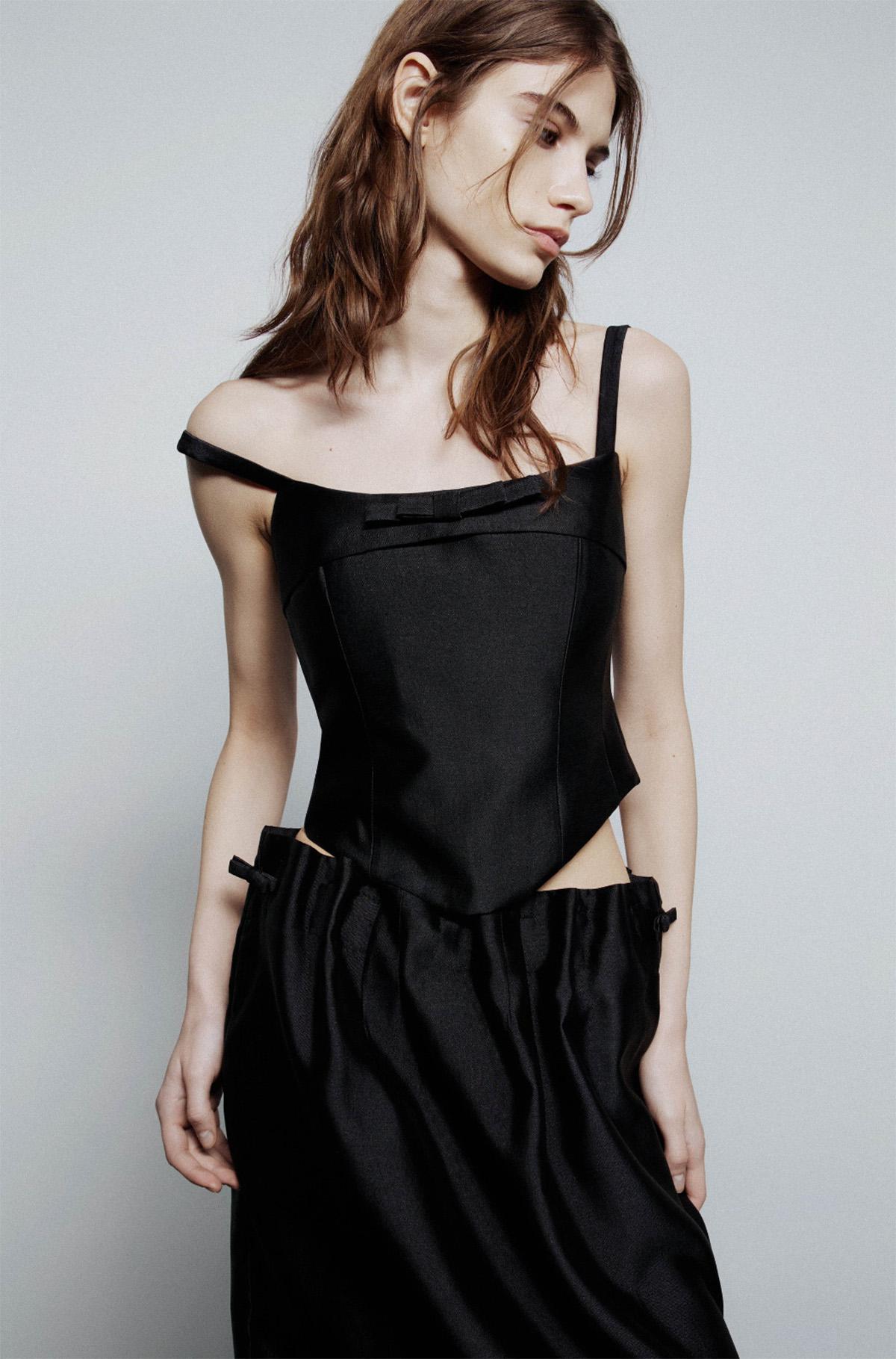 Прежде всего, в моде закрепились корсетные конструкции, которые заметно трансформировались — в актуальной версии они лишены жесткости и театральности: это скорее топы и платья с аккуратно смоделированным верхом.