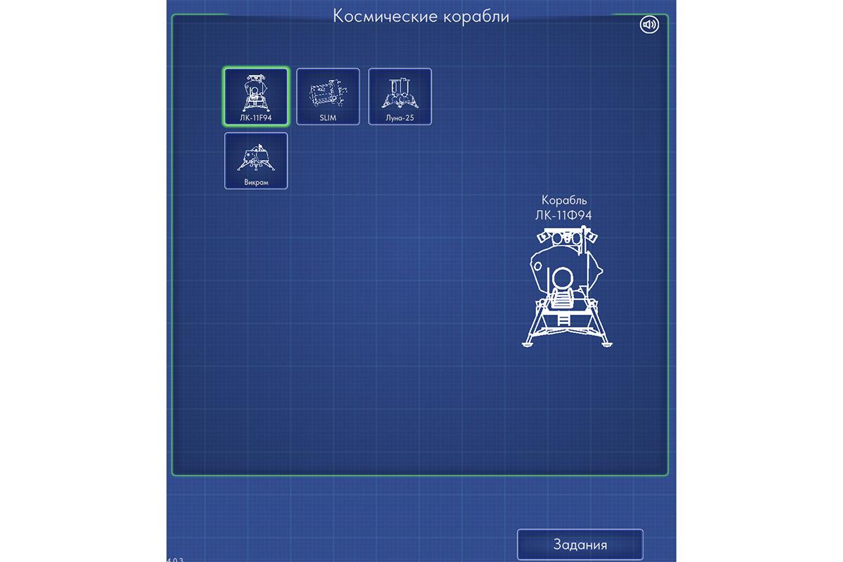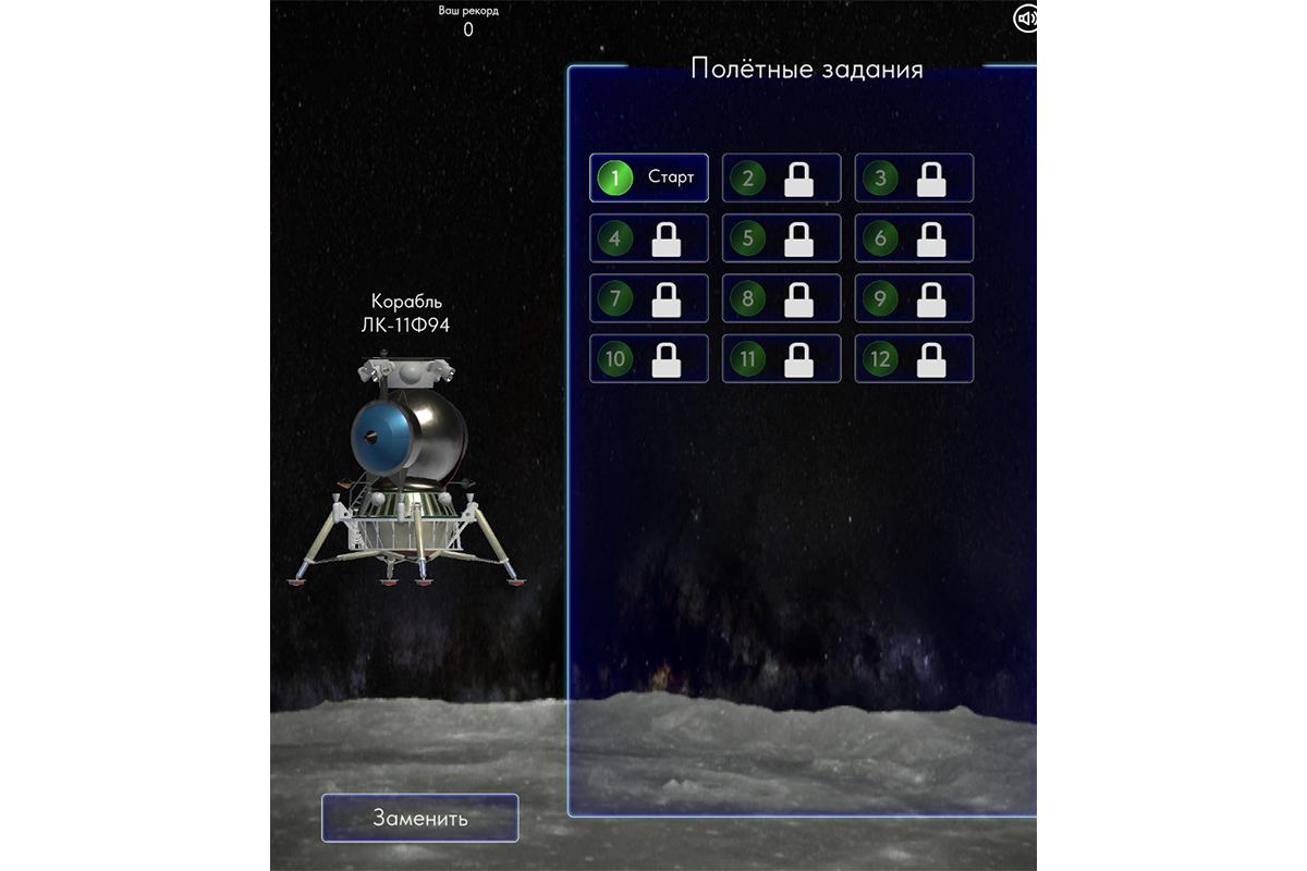 Игрокам предстоит взять под свой контроль один из лунных кораблей, включая известный советский ЛК-11Ф94. Геймерам необходимо аккуратно посадить аппарат на поверхность спутника Земли. Игрок самостоятельно выбирает место приземления. Затем необходимо посадить корабль на поверхность. Для этого придется контролировать силу тяги главного двигателя, направление тяги и задавать наклон корабля. В ходе полета также можно выполнять дополнительные задания. За них дают бонусные баллы. Найти игру можно с помощью поиска по названию: «Лунный корабль».