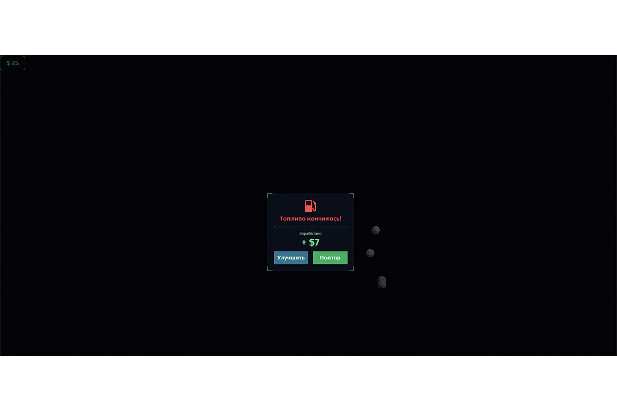 В этой игре геймерам предстоит отчищать пространство вокруг корабля от астероидов. Делать это можно, пока не кончится топливо. За каждый уничтоженный астероид дается игровая валюта. Ее можно потратить на улучшение корабля. Доступны пять направлений развития аппарата: увеличение топливного бака, повышения урона, ускорение перезарядки, расширение радиуса курсора и увеличение шанса критического удара.