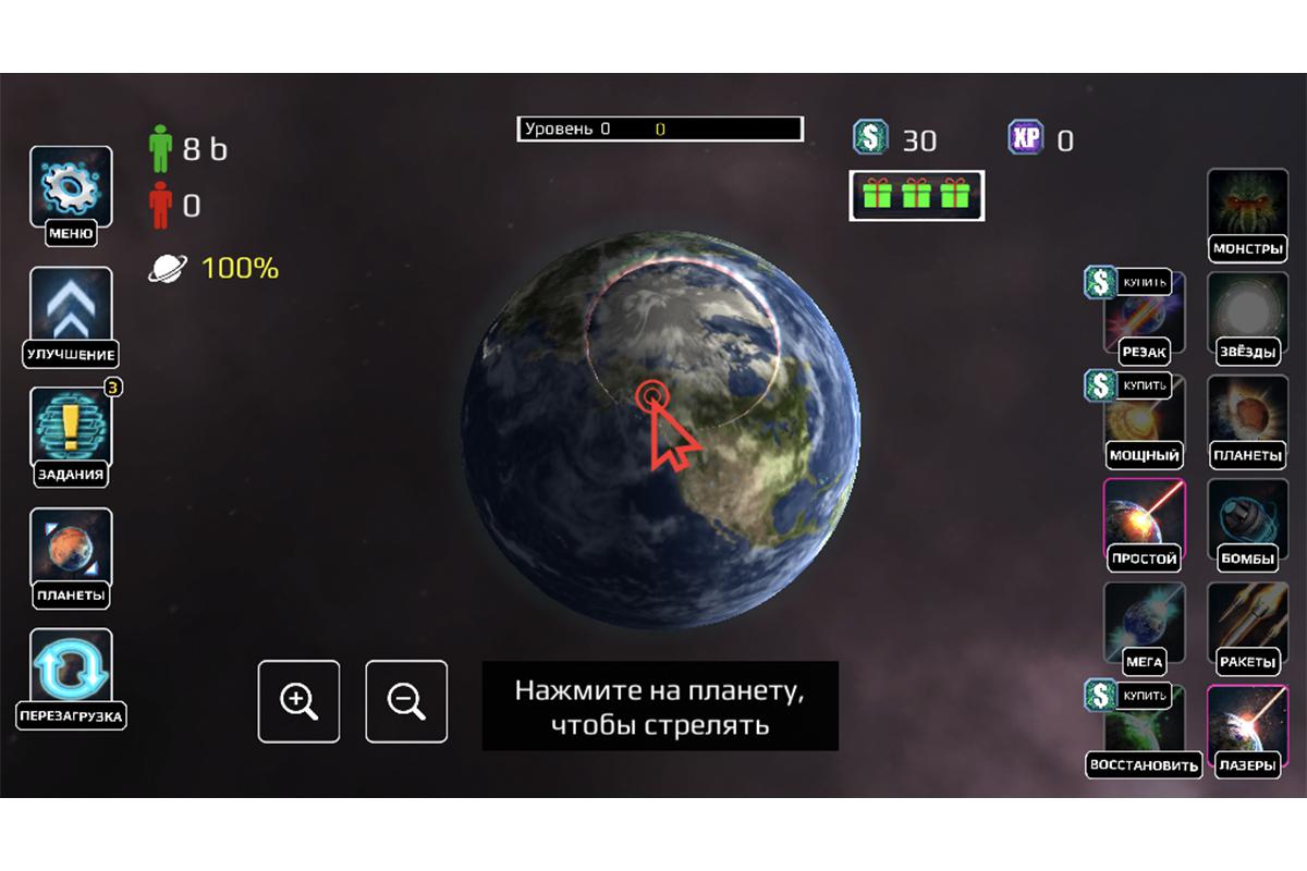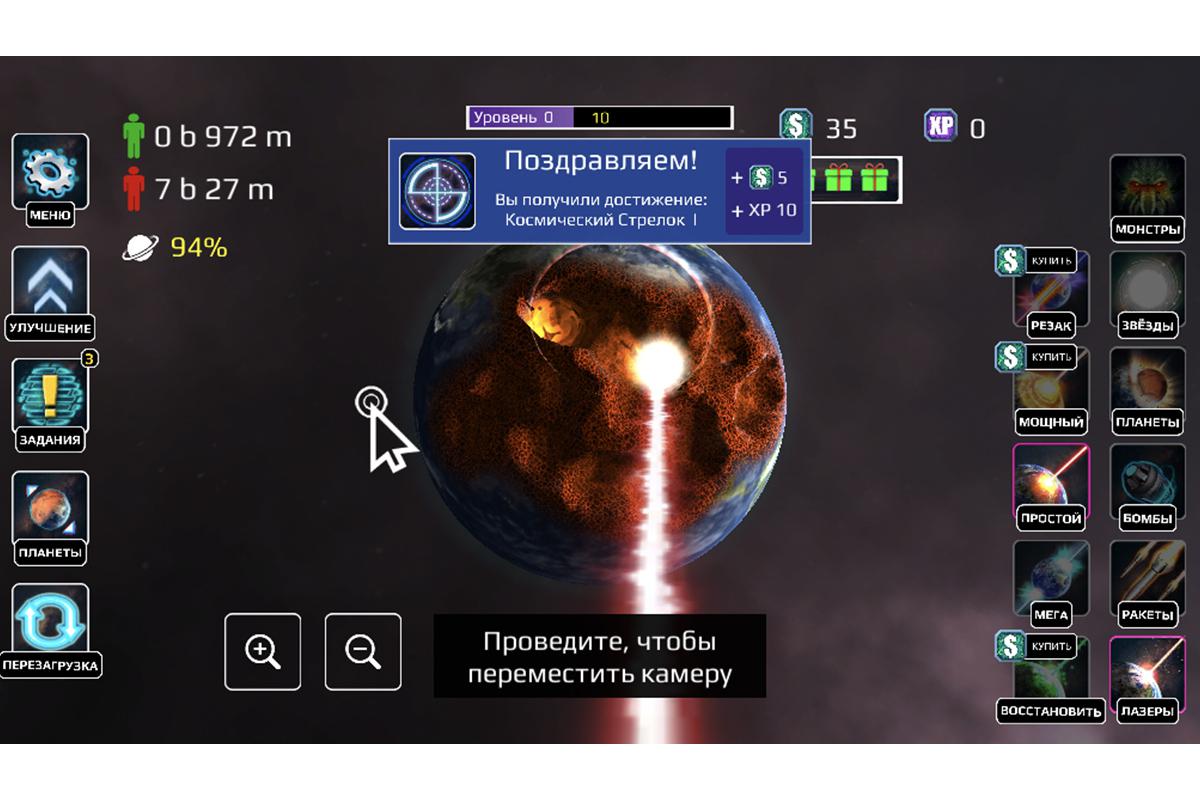 Игра позволяет разрушать или создавать планеты. Игроку доступен огромный арсенал из лазеров, ракет и многого другого для уничтожения планет. Геймер может вызывать сверхновые и создавать черные дыры.