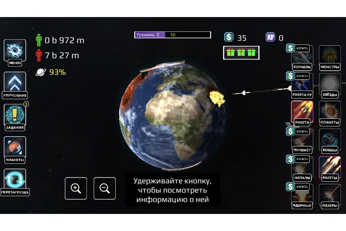 Игровая валюта начисляется за каждый разрушенный астероид. Однако, чтобы пройти уровень, необходимо уничтожить их все. Игру можно найти с помощью поиска по названию: «Операция чистый космос».