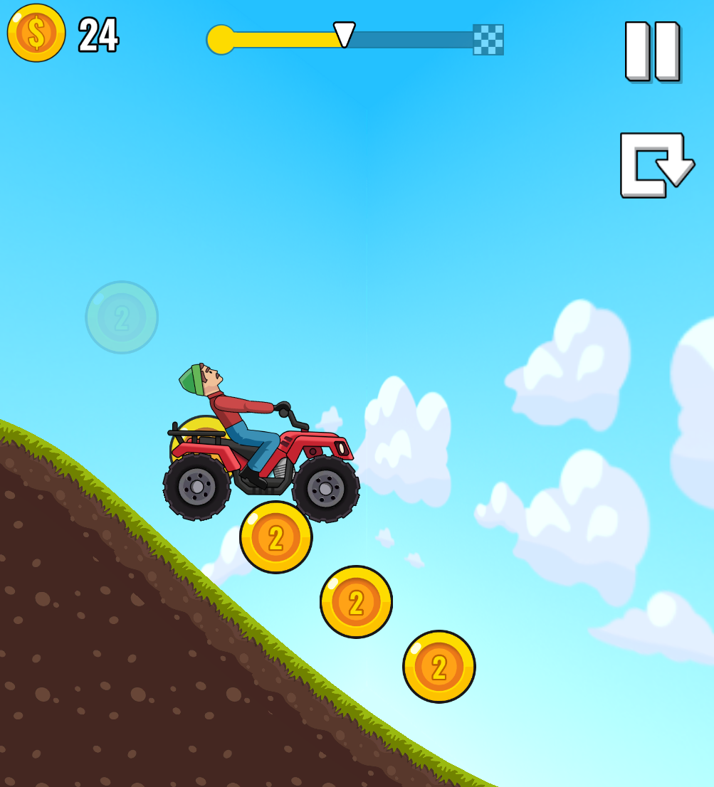Эта игра предлагает 2D-трасы для прохождения. Геймерам доступно множество видов различной техники, от квадроциклов до внедорожников и грузовиков. В игре 60 трасс, а также шесть разных природных локаций. Главная задача — добраться до финиша. По пути игрокам необходимо собирать монетки. Слишком сложные уровни можно пропустить. Найти игру можно в разделе «Гонки» или с помощью поиска по названию «Хилл Климб: машины и мотоциклы».