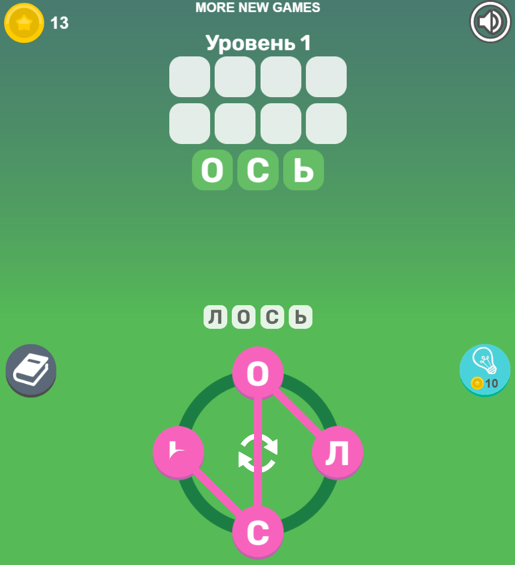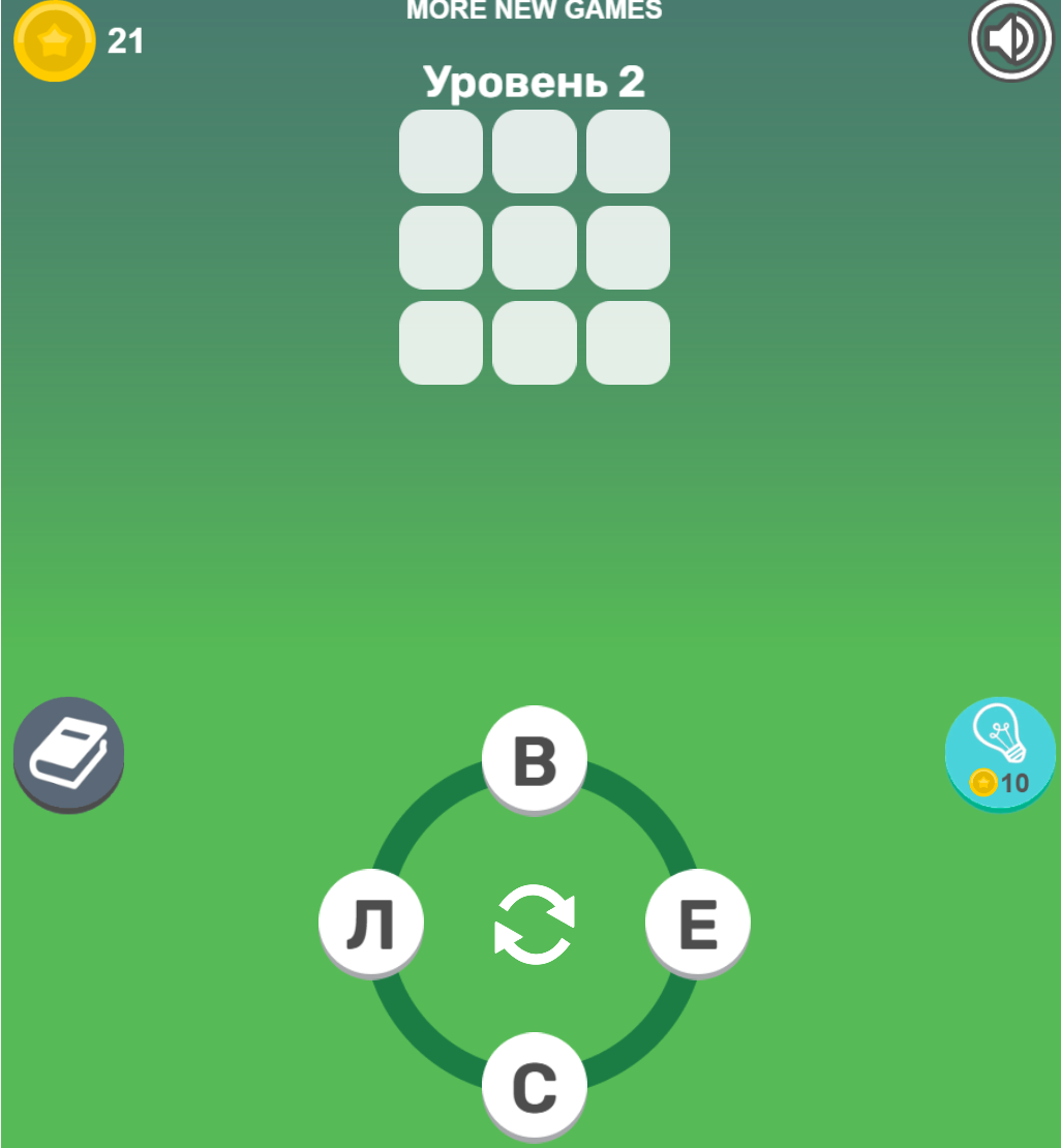 Геймерам необходимо собирать слова из букв, расположенных по кругу. За каждое игрок получает очки. Чем длиннее слово отгадывает геймер, тем большую награду он получит. Их можно потратить на подсказки. Всего в игре 50 уровней, каждый из которых предлагает уникальные слова. С проектом можно ознакомиться в разделе «Обучающие» или с помощью поиска по названию — «Буквы».