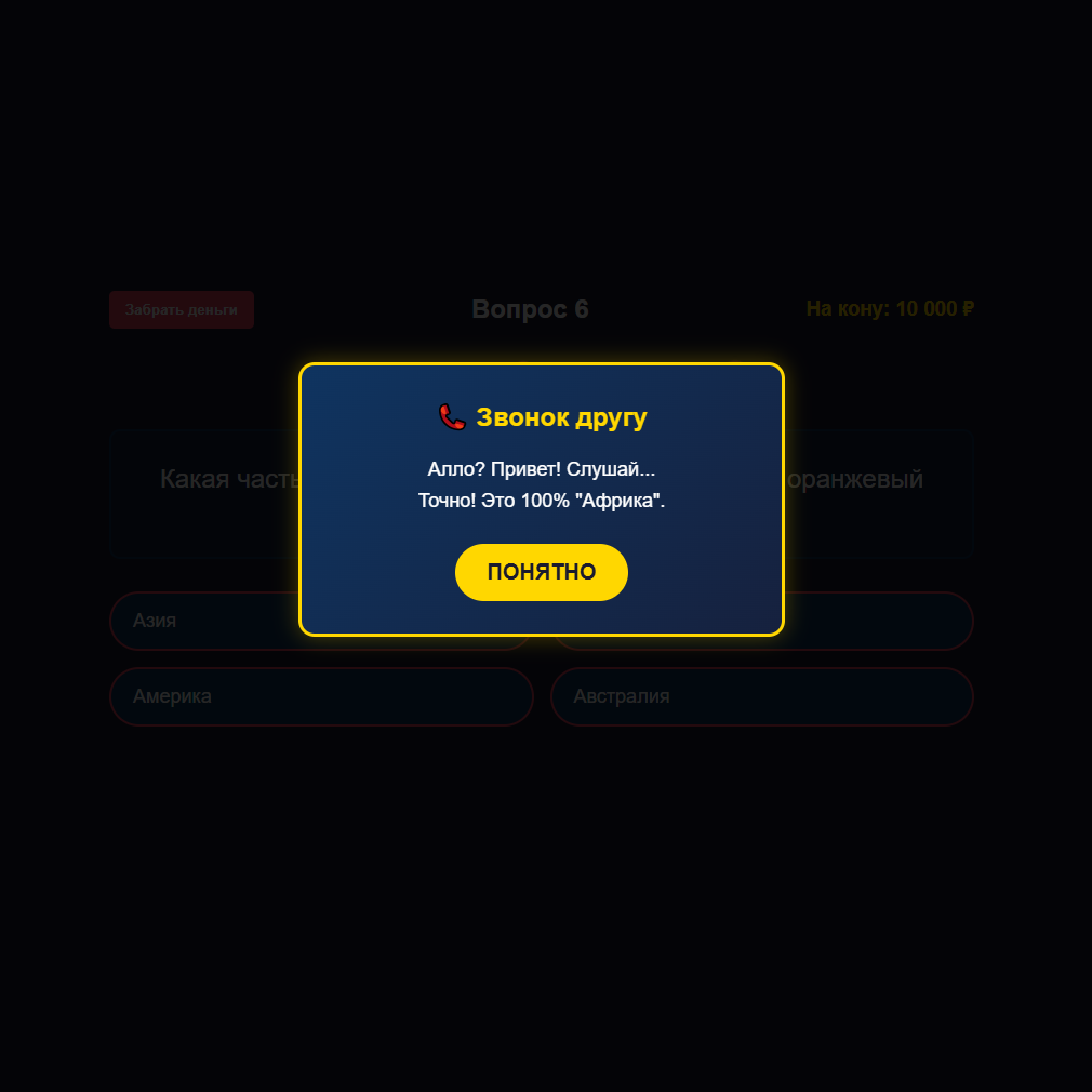 В ходе викторины по одному разу можно воспользоваться заменой вопроса или одной из трех подсказок: 50/50, помощью зала или звонком другу. В случае с последним реального вызова не потребуется. Ответ игроку даст бот. В проекте есть таблица лидеров среди всех игроков. Найти игру можно в разделе «Викторины» или с помощью поиска по названию — «Новый миллионер 2026».