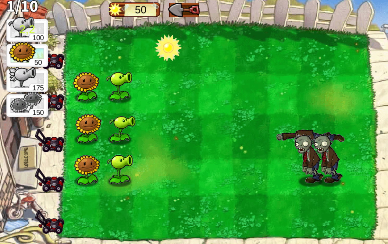 Игрокам предстоит сажать растения, которые будут уничтожать оживших мертвецов. Некоторые из них наносят зомби прямой урон, другие задерживают противников. Растения покупаются за «солнца», которые падают с неба. Их также могут производить некоторые растения. Игру можно найти по названию: «Битва растений и зомби».